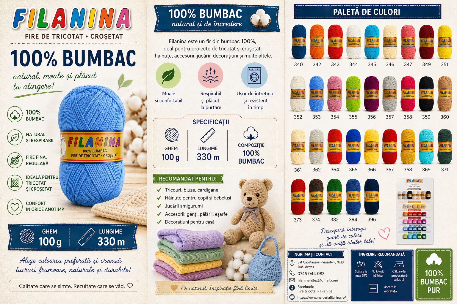 100% bumbac, 330m/100g, croseta 2-2,5